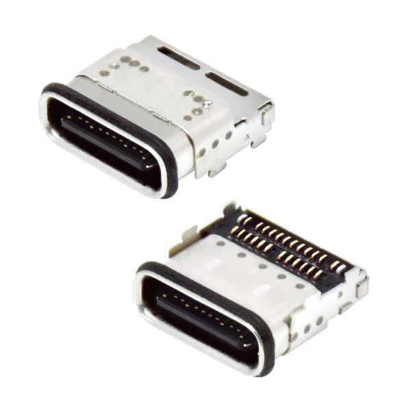 USB4 Type C Receptacle Right Angle Dual SMT Top-Mount, CH:1.60m